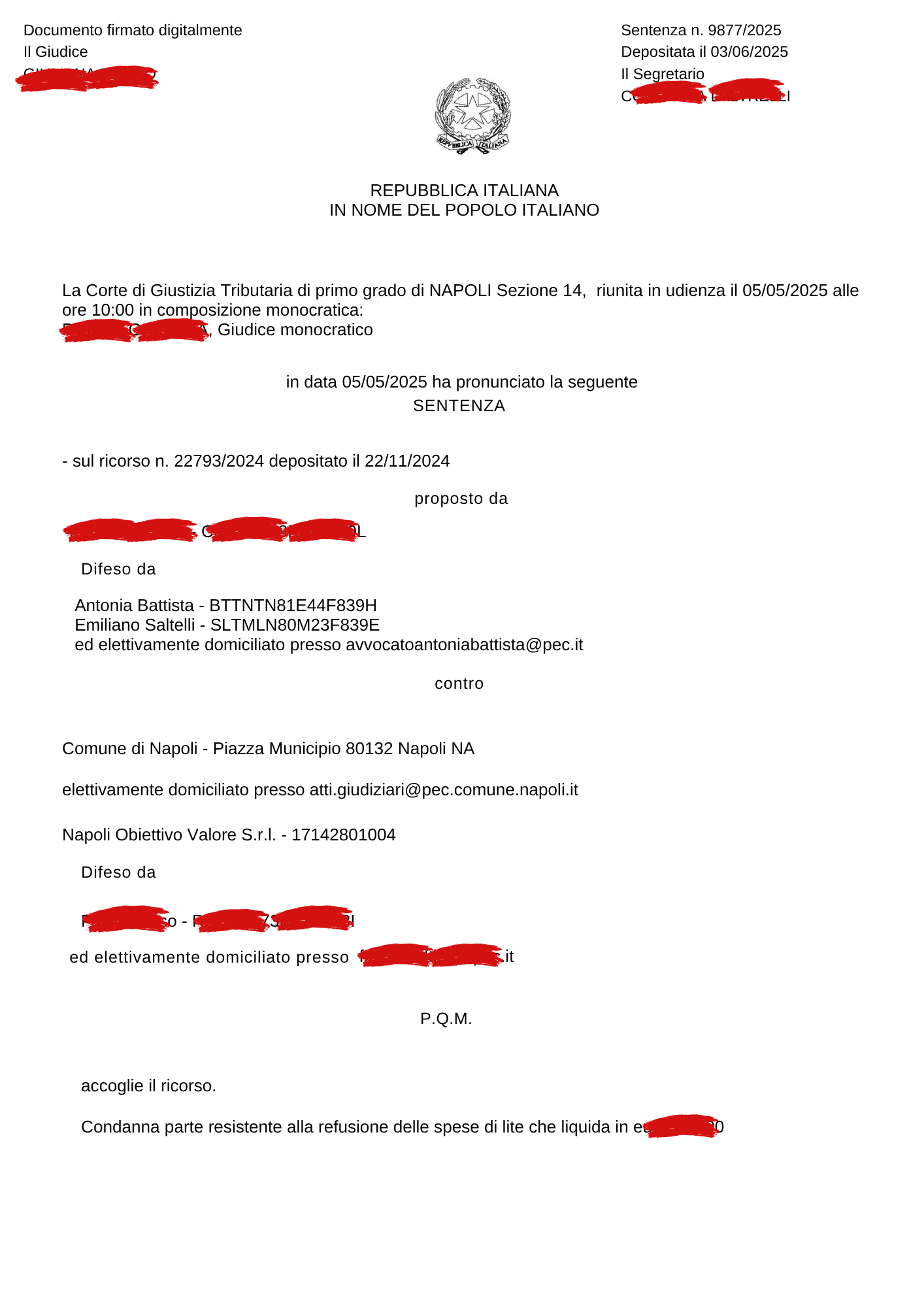 - 👉 Il nostro studio Legale annulla altro avviso TARI. Napoli Obiettivo Valore ancora una volta battuta!