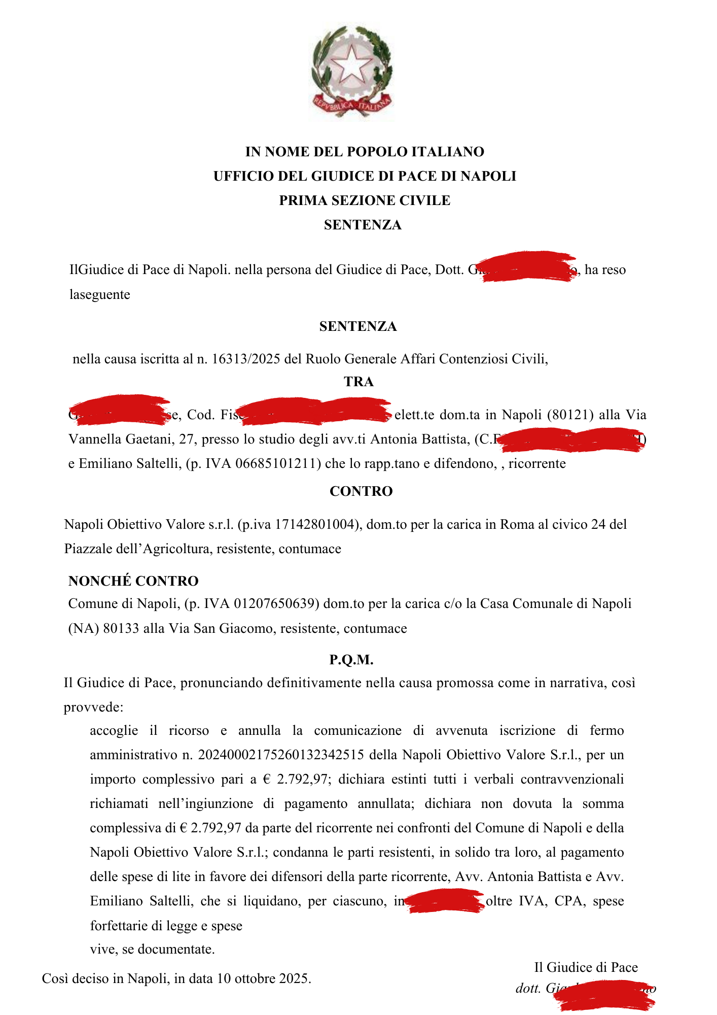 È proprio da una situazione del genere che nasce una nuova e importante vittoria ottenuta dallo Studio Legale Saltelli davanti al Giudice di Pace di Napoli.