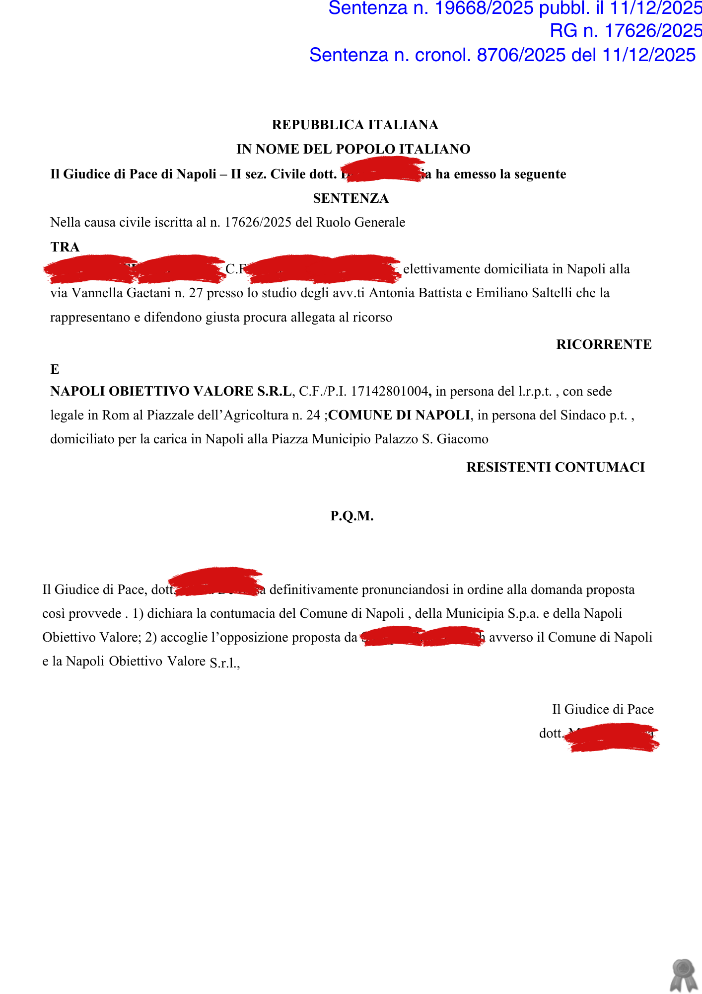 👉 Ingiunzione annullata per mancanza di notifica: nuova vittoria contro Napoli Obiettivo Valore